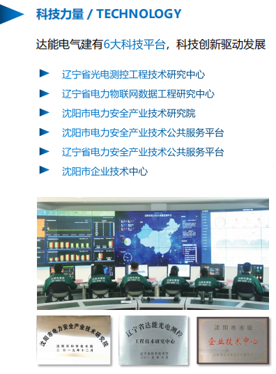達(dá)能電氣秉承“研發(fā)創(chuàng)新、卓越質(zhì)量、專(zhuān)業(yè)服務(wù)”的理念,是國(guó)內(nèi)先進(jìn)的電力物聯(lián)網(wǎng)研發(fā)、設(shè)計(jì)、生產(chǎn)、銷(xiāo)售、施工于一體的高新技術(shù)型企業(yè)。公司以高強(qiáng)度聚焦細(xì)分領(lǐng)域科技創(chuàng)新,建有科技創(chuàng)新6大平臺(tái),持續(xù)為科技發(fā)展賦能。
