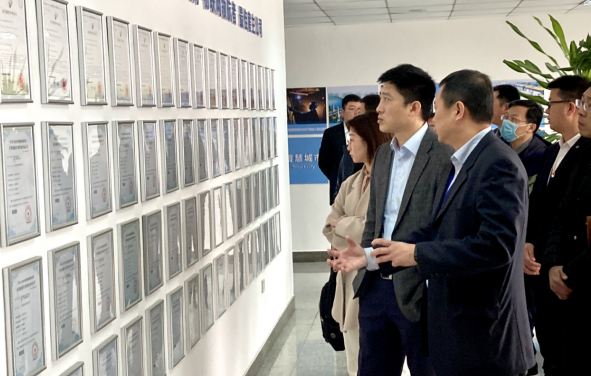 董事長高藝(左)陪同領(lǐng)導(dǎo)參觀公司
