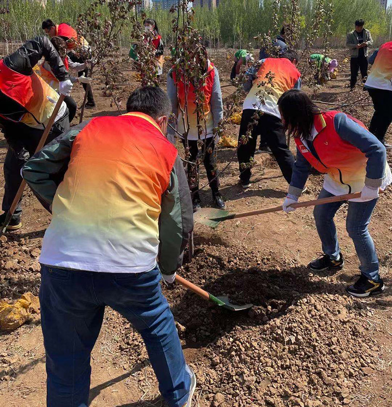 植樹現(xiàn)場,志愿者們協(xié)調(diào)配合,分工合作,眾人移樹扛苗、揮鍬鏟土,一派熱火朝天的勞動(dòng)場面,用植樹行動(dòng)迎接勞動(dòng)之日,踐行勞動(dòng)精神。經(jīng)過志愿者們一上午的努力,數(shù)十顆樹苗昂然挺立,為周圍環(huán)境增添綠意。
