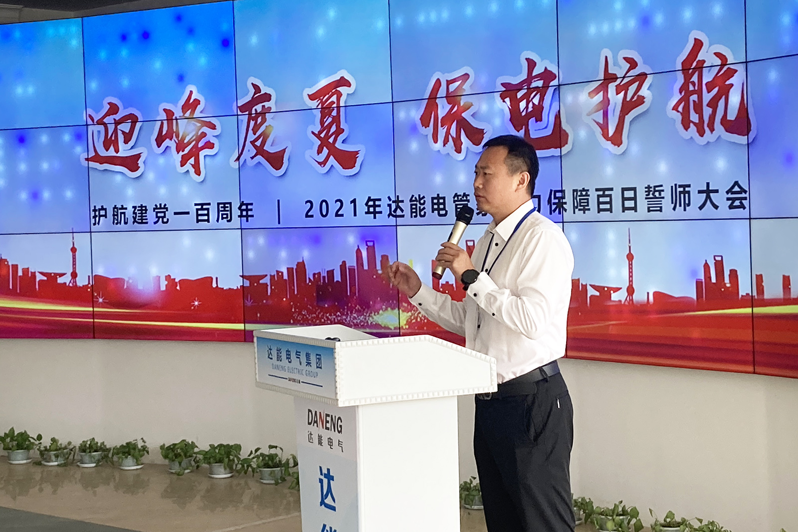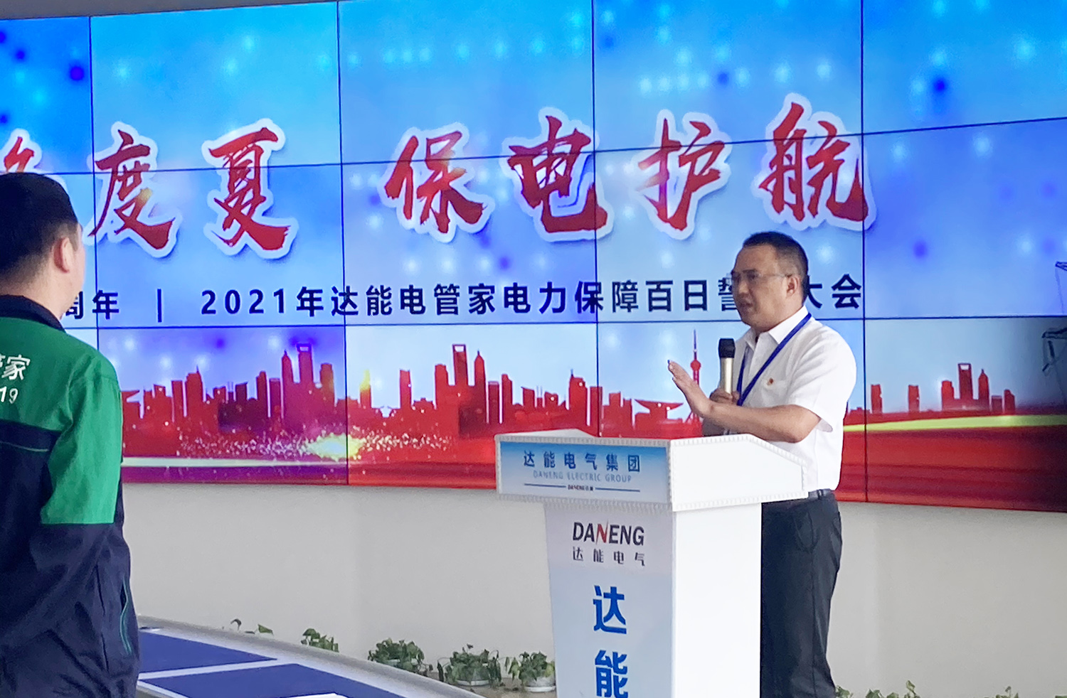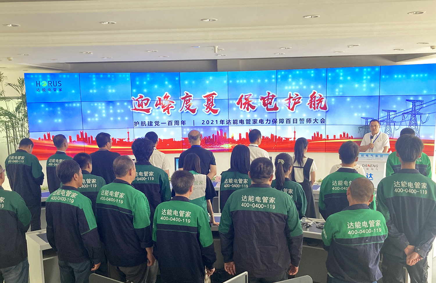 夏季用電高峰將至,為了確保用戶電力設(shè)施平穩(wěn)運(yùn)行,切實(shí)做好安全運(yùn)維工作,保障電力供應(yīng),護(hù)航建黨一百周年,達(dá)能電管家啟動(dòng)“迎峰度夏,保電護(hù)航—電力保障行動(dòng)”,并于6月25日召開“電力保障百日誓師大會(huì)”。誓師大會(huì)由達(dá)能電氣集團(tuán)總裁關(guān)慧明主持召開,董事長(zhǎng)高藝、電力服務(wù)中心負(fù)責(zé)人季剛、公司各部門負(fù)責(zé)人、電管家相關(guān)人員等參會(huì)。