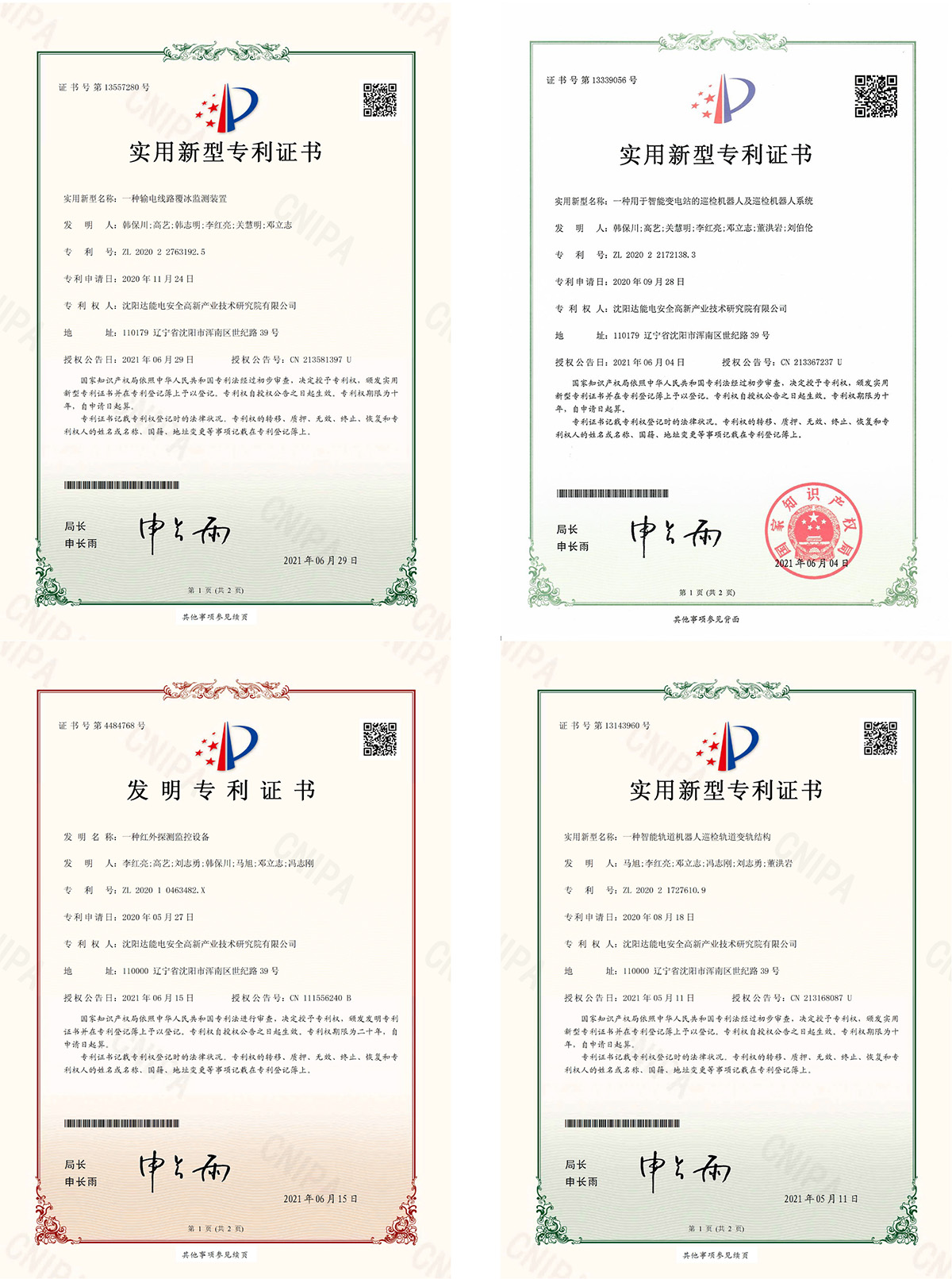 實(shí)用新型專利包括:《一種用于智能變電站的巡檢機(jī)器人及巡檢機(jī)器人系統(tǒng)》、《一種輸電線路覆冰監(jiān)測(cè)裝置》、《一種智能軌道機(jī)器人巡檢軌道變軌結(jié)構(gòu)》,發(fā)明專利為《一種紅外探測(cè)監(jiān)控設(shè)備》。