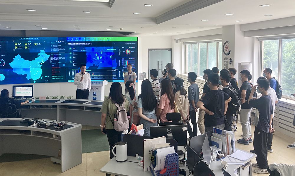 達能電氣集團科技發(fā)展部負責人楊延羽接待來訪師生,楊總對東北大學師生表示歡迎并介紹了公司的基本情況和電力物聯(lián)網(wǎng)技術(shù)產(chǎn)品。在達能電力數(shù)據(jù)云服務中心,研發(fā)部人員結(jié)合課題及公司業(yè)務,為大學師生細致講解在線監(jiān)測、電力運維、電力大數(shù)據(jù)、云服務等內(nèi)容,并認真回答提問,與在場師生積極互動,開展技術(shù)交流。通過參觀學習,大學生直觀、系統(tǒng)的了解電力物聯(lián)網(wǎng)技術(shù)應用,對電力物聯(lián)網(wǎng)的行業(yè)現(xiàn)狀及發(fā)展脈絡有了更深刻的認識。