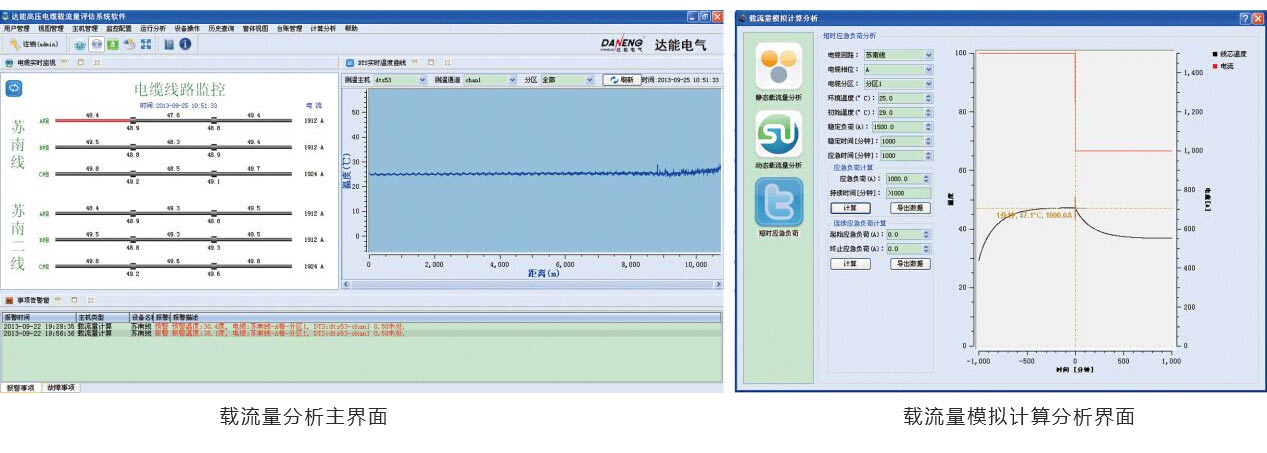 達(dá)能電氣DT-SF3000載流量分析軟件基于先進(jìn)的DTS分布式光纖測(cè)溫技術(shù),可以實(shí)時(shí)、全范圍監(jiān)測(cè)電纜表面溫度,采用國際電工委員會(huì)標(biāo)準(zhǔn)IEC60287、IEC60853算法模型實(shí)時(shí)計(jì)算導(dǎo)體溫度和動(dòng)態(tài)載流量,為電纜的安全監(jiān)控和負(fù)荷管理提供了有效幫助。此軟件具有良好的擴(kuò)展性,可與其他開放性現(xiàn)場(chǎng)設(shè)備進(jìn)行無縫連接,實(shí)現(xiàn)實(shí)時(shí)數(shù)據(jù)顯示以及警報(bào)顯示等功能。