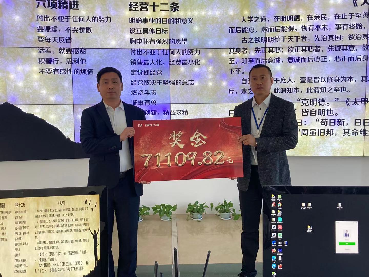 10月11日,達能電氣集團召開月度會議。會議首先進行表彰儀式,對電力中心負責(zé)人季剛給予現(xiàn)金獎勵7萬余元,以獎勵季剛的銷售佳績。激勵工程中心現(xiàn)金5萬余元,表彰圓滿完成重要工程項目。達能電氣董事長高藝為獲獎員工頒獎,高總號召全員學(xué)習(xí)先進、學(xué)習(xí)典型,激勵大家用奮斗創(chuàng)造價值。