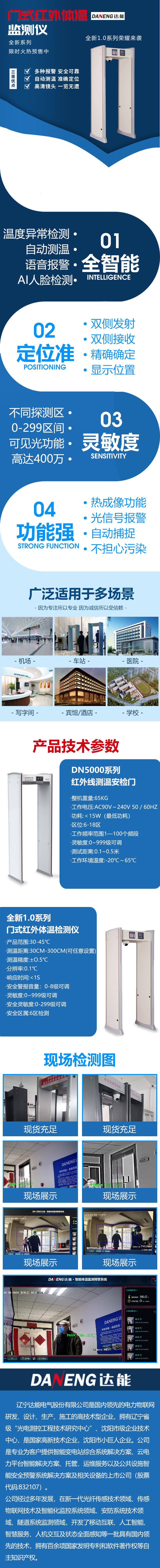 達(dá)能電氣根據(jù)不同場(chǎng)合不同需求研制了2款系列產(chǎn)品:門式紅外探頭體溫監(jiān)測(cè)儀和門式紅外體溫監(jiān)測(cè)儀,2款產(chǎn)品分別在于:前者是測(cè)溫+金屬探測(cè)于一體的測(cè)溫儀,可兼顧安檢門使用;后者是在前者基礎(chǔ)上增加AI+熱成像技術(shù),可同時(shí)對(duì)多個(gè)檢測(cè)源進(jìn)行自動(dòng)體溫精準(zhǔn)偵測(cè)篩查,對(duì)體溫異常的人員進(jìn)行篩查和報(bào)警,并記錄在系統(tǒng),適用于大流量人員通過的場(chǎng)所。