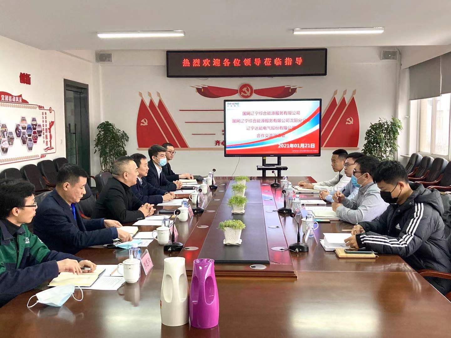 潘部長認(rèn)真聽取高總及關(guān)總的介紹,對(duì)達(dá)能的技術(shù)優(yōu)勢(shì)和電力物聯(lián)網(wǎng)的創(chuàng)新成果給予高度評(píng)價(jià)。潘部長介紹了國網(wǎng)遼寧綜合能源服務(wù)有限公司在醫(yī)院、學(xué)校等開展的綜合能源示范項(xiàng)目,雙方圍繞項(xiàng)目運(yùn)維、電力大數(shù)據(jù)、差異化服務(wù)等深入交換意見,并就合作模式進(jìn)行討論。潘部長表示,國網(wǎng)遼寧綜合能源服務(wù)有限公司高度重視與達(dá)能在綜合能源方面的合作,非常期待雙方在綜合能源領(lǐng)域創(chuàng)造更多價(jià)值。國網(wǎng)遼寧綜合能源服務(wù)有限公司將積極召開內(nèi)部會(huì)議,就更多細(xì)節(jié)開展討論,推進(jìn)合作進(jìn)程。2021年,面對(duì)更多的機(jī)遇和挑戰(zhàn),達(dá)能電氣將攜手國網(wǎng)綜合能源,開創(chuàng)“共贏共享共發(fā)展”新格局!
