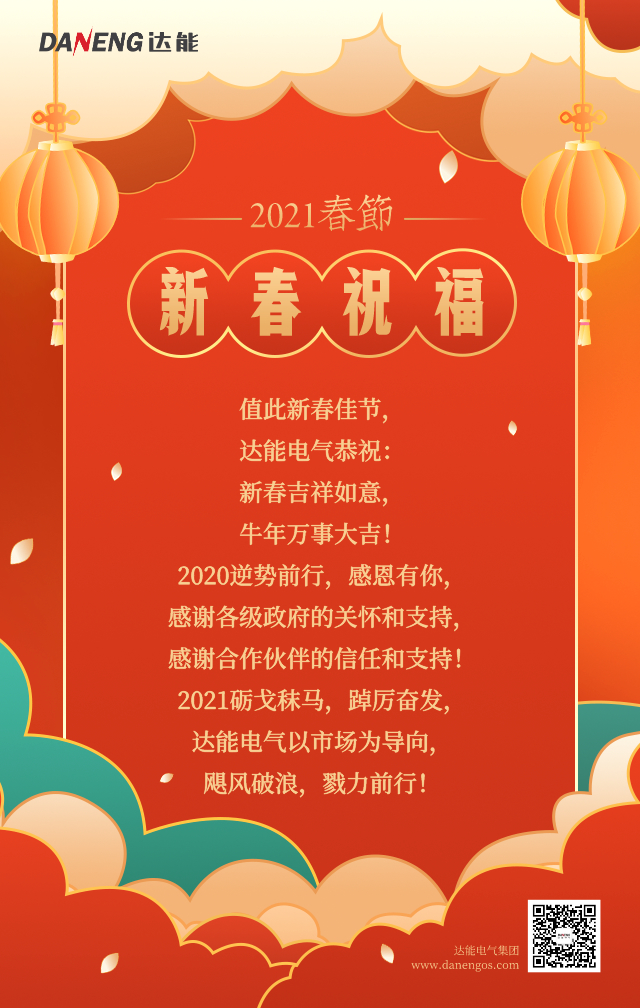 2021年牛年新春已至,各處張燈結(jié)彩,一片祥和喜慶。值此新春佳節(jié)之際,達(dá)能電氣恭祝廣大用戶及合作伙伴、社會(huì)各界朋友:新年快樂!牛年吉祥如意,牛年牛氣十足,犇向幸福!