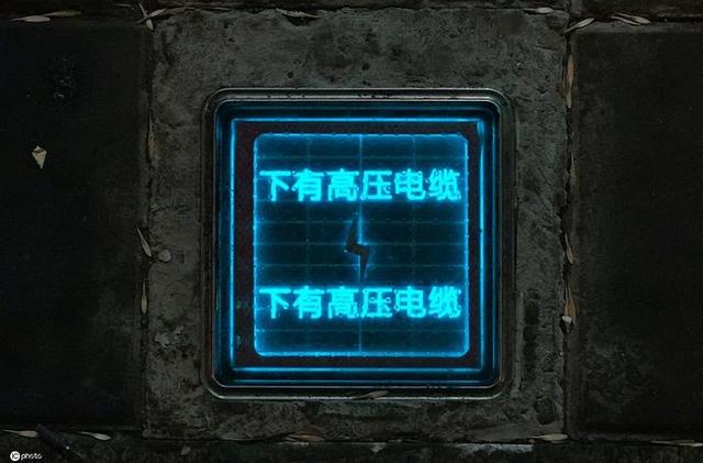 2021年1月20日,遼寧省沈陽(yáng)市,和平區(qū)首條高壓電纜地面標(biāo)識(shí)亮相街頭,夜晚被喚醒點(diǎn)亮,藍(lán)屏醒目來(lái)往經(jīng)過(guò)的市民低頭一看,下有高壓電纜提示。