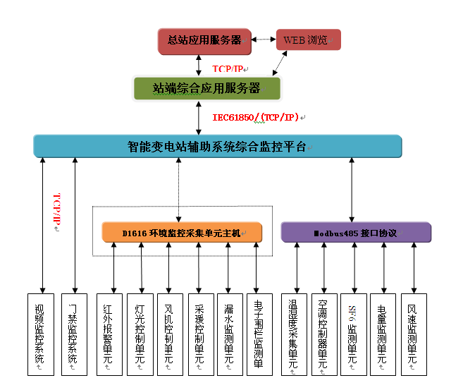 通過采集和傳輸技術(shù)的應(yīng)用,利用我公司D1616輔助控制主機,可以實時監(jiān)測某些重要場所和設(shè)備的工作環(huán)境(如:電壓、電流、溫度、濕度、漏水、水位、有害氣體、含氧量、風(fēng)速風(fēng)向、煙霧、明火等等);當工作環(huán)境出現(xiàn)異常時,可及時顯示、報警,并可通過通信IP網(wǎng)絡(luò)將數(shù)據(jù)上傳至市級和省級調(diào)度中心。